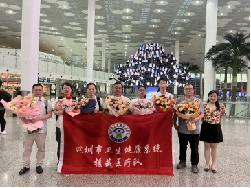 稿件来源:党委办公室 发布时间:2023-08-03 15:43:292023年8月2日下午,我院广东省2022年“组团式”援藏医疗人才肺病三科主任医师刘智圆满完成各项援藏任务返回深圳。深圳市卫生健康委相关负责同志前往机场接机,我院党委高度重视,为表组织深切关怀和暖心慰问,派党办工作人员与刘智同志的妻子、眼科副主任护师关彩艳同志共同前往机场接机欢迎。