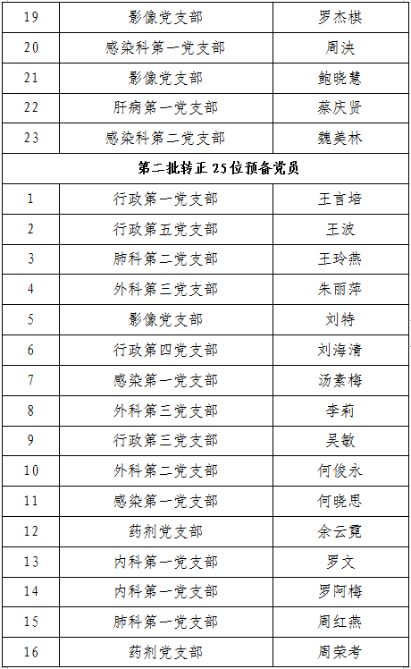 院党委经过层层筛选审核,最终从373位入党积极分子中,共分为两批发展了48名优秀同志加入中国共产党。经过一年预备期的考验,48位同志在思想上、行动上均能严格按照正式党员标准要求自己,并表示成为正式党员后定将进一步要求自己奋发进取,为党和医疗卫生事业贡献力量。