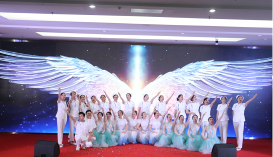 授帽仪式结束后,以“关爱护士队伍,护佑人民健康”为主题的文艺演出在绚丽多姿的《敦煌飞梦》舞蹈中拉开帷幕。情景剧《跨越距离的奇迹》、《天使之翼》 ,乐队表演《我相信》 ,诗朗诵《我们的bet9九州 》 ,旗袍秀《水墨兰亭》 ,合唱《一起向未来》 ,舞蹈《绽放》……精彩节目轮番上演,表演朴实却不失专业、舞姿轻盈且尽显柔美,护理部的天使们才情尽显,展现了燕尾帽下的另一面,传递着我院护理团队以如磐初心凝聚的磅礴力量,彰显了我们守护人民群众生命健康的决心,赢得了台下观众阵阵掌声与喝彩。