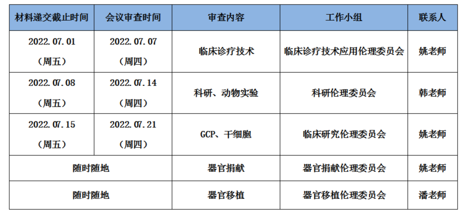 稿件来源:bet9九州(中国)官方网站 发布时间:2022-06-06 10:06:042022年7月份伦理委员会会议审查时间表