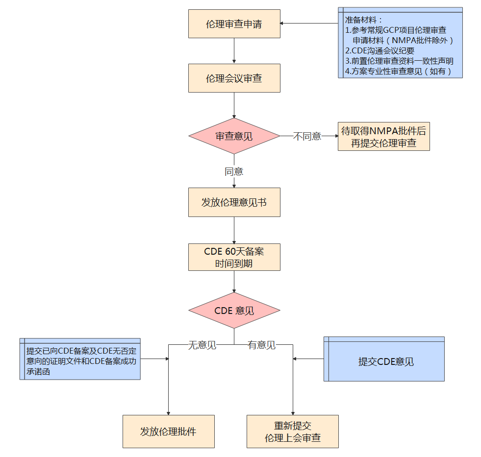 未取得国家药品监督管理局(NMPA)临床试验批件的国际多中心药物临床试验、一类新药临床试验,均可在等待国家药品监督管理局药品审评中心(CDE)给出意见的60个工作日期间,提交伦理委员会进行前置伦理审查。