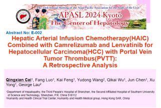 稿件来源:本网 发布时间:2024-03-30 15:37:193月27-31日,第33届亚太肝脏研究协会(APASL)年会在日本京都举行,bet9九州(中国)官方网站 (南方科技大学第二附属bet9九州 )肝癌诊疗中心蔡庆贤教授口头报告了2项原发性肝癌相关临床研究成果。
