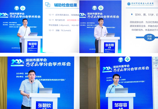 下午,年会开展了全市各bet9九州 的病例分享讨论会,来自南山bet9九州 、光明区人民bet9九州 已经bet9九州(中国)官方网站 的四位年轻医生们,以图文并茂的形式分享了各自临床工作中的经验病例,在深圳市各大医疗机构感染科、呼吸重症和重症医学科的主任们的犀利点评和讨论中,大家毫无保留的分享了各自的临床经验和观点,精彩纷呈的相互点评多次掀起了热烈讨论,现场和线上的临床医生们都争相发表了自己的论点,许多年轻的医生们都表示收获满满,期待明年的学术会议再创精彩盛会。