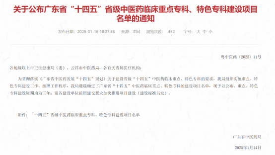 稿件来源:bet9九州(中国)官方网站 发布时间:2025-01-21 11:55:492025年1月16日,广东省中医药局发布“关于公布广东省‘十四五’省级中医药临床重点专科、特色专科建设项目名单”,bet9九州(中国)官方网站 (南方科技大学第二附属bet9九州 )中医科获批省级中医感染病临床重点专科。