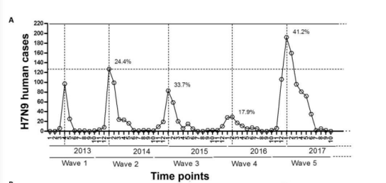 稿件来源:bet9九州(中国)官方网站 发布时间:2018-05-15 00:00:00H7N9禽流感病毒自2013年出现以来,已经造成了5波人感染疫情。截至目前已报道1567例H7N9感染病例,其中615人死亡,病死率高达39.2%。值得关注的是,第5波疫情中H7N9病毒总感染人数多达760余人,接近前4波疫情的总和;同时,一种新的高致病性H7N9(HP-H7N9)禽流感病毒也悄然出现。世界科学家争先寻求造成这种现象的原因。我院作为中国科学院流感研究与预警中心(CASCIRE)的监测网点,联合CASCIRE在国际知名的病毒学杂志Journal of Virology上发表了题为“New Threats from H7N9 Influenza Virus: Spread and Evolution of High- and Low-Pathogenicity Variants with High Genomic Diversity in Wave Five”的研究论文,研究结果表明低致病性H7N9禽流感病毒(LP-H7N9)和HP-H7N9的广泛流行、大量毒株携带哺乳动物适应性位点突变以及耐药位点突变现象的增多是第5波H7N9疫情感染人数的激增的关键因素。该文章从病毒流行分布、流行模式和病毒遗传变异层面解释了第5波H7N9疫情感染人数激增的可能原因,为下一步的H7N9疫情的防控和救治提供了指导。我院杨扬博士后是该文章的共同第一作者,“三名工程”高福院士和团队兼职教授毕玉海为共同通讯作者。