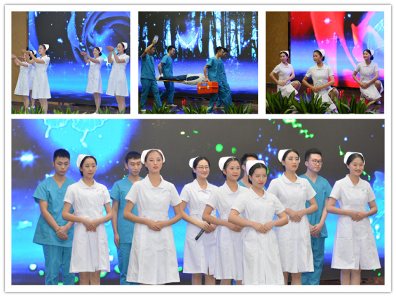 结束后,精彩的文艺汇演拉开了帷幕。 《护士礼仪》表演了护士工作中的坐姿、蹲姿、推车、托盘、见面问候、护患交流等场景,展现了护士的美好形象。