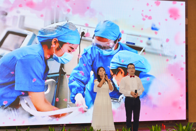 十佳歌手深情对唱《凉夜守护》,古韵悠长的音乐与滚动播放的各科室临床工作场景起承转合,唱出了普通医务工作者对病人的牵挂和对行业的眷恋。
