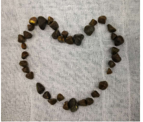 肝胆外科主任刘嘉林为一名医生家属郑女士做了保胆取石手术,取出了37颗小结石。术后,男医生把结石摆成了“心”型。目前,该院已经做了三十多例“保胆取石”手术,技术、科研等方面走在全市前列。