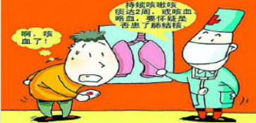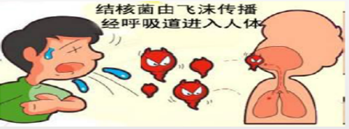 2、 肺结核病人通过咳嗽、咳痰、打喷嚏将结核菌播散到空气中,健康人吸入带有结核菌的飞沫即可能受到感染。