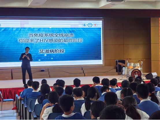 讲座中,我院感染重症医学科副主任医师林元龙以漫画演示和真实案例为切入点,详细阐释艾滋病三大传播途径(血液、性接触、母婴传播),并针对性澄清“蚊虫叮咬不传播”“日常接触无风险”等常见误区。针对青少年认知特点,林医生创新提出“ABC防艾原则”(禁欲、忠诚、安全套),结合“暴露后阻断药物(PEP)黄金72小时”自救指南,为学生提供实用防护策略。