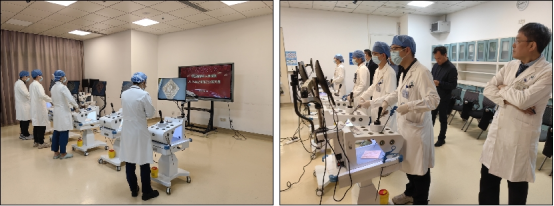 此次技能竞赛还吸引了在院住培医师、研究生和本科实习的观看,为了保证现场比赛秩序,技能中心首次完成了在线转播过程,通过直播形式将比赛现场的情况转播到示教室,供前来“助战”和学习的人员观看。